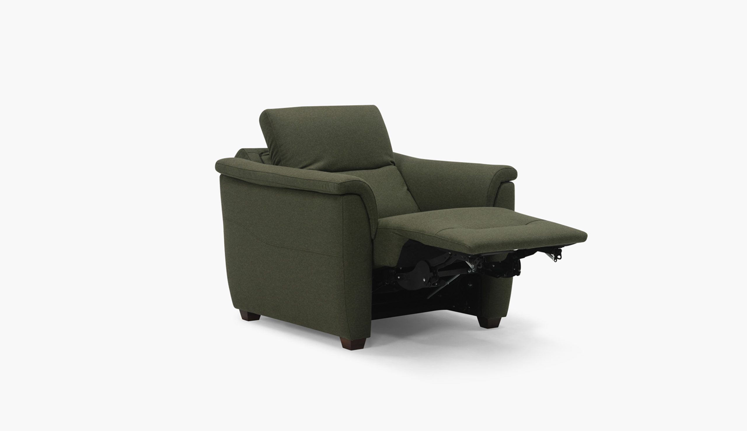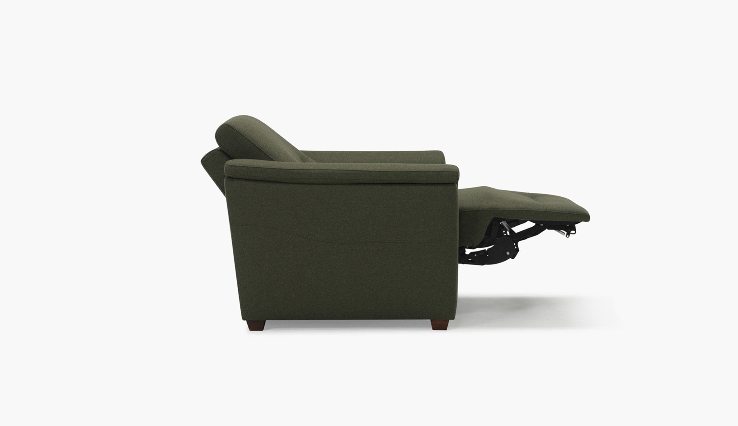 Oxford provides classic comfort with its padded armrest and decorative pull tuck detail on the seat and footrest. Standard with triple motor power recline, headrest, and lumbar, Oxford is also available with the Premium Amenities package and choice of walnut or black ash wood elements. Available in all leather, leather match, and fabrics, with the exception of accent fabrics.